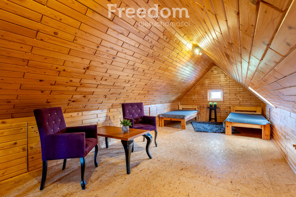 jako salonik lub miejsce do pracy) oraz łazienkę z WC. Na poddaszu